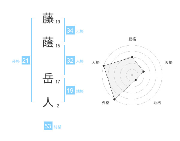 藤蔭 岳人さんの総格は53画の3点!
