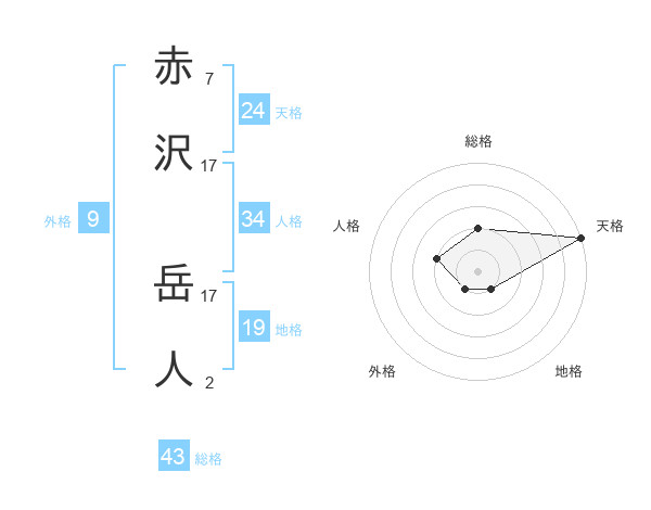 赤沢 岳人さんの天格は24画の5点!