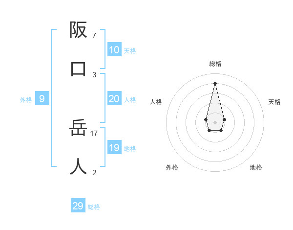 阪口 岳人さんの総格は29画の4点!