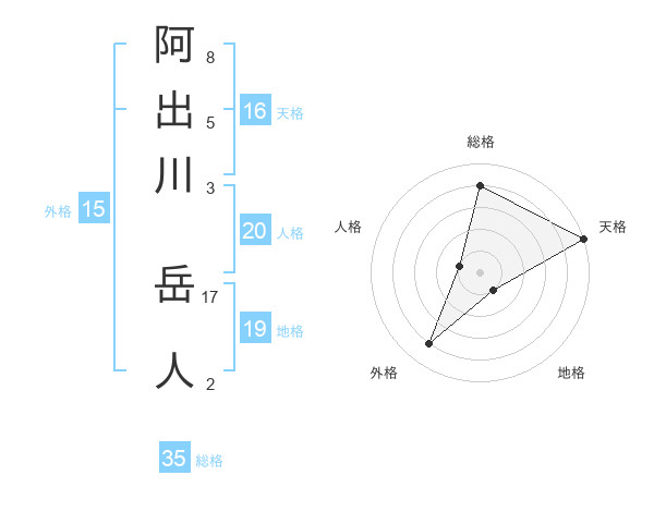 阿出川 岳人さんの総格は35画の4点!