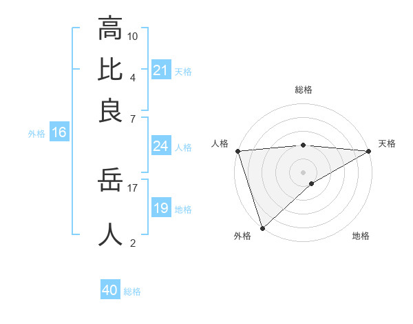 高比良 岳人さんの天格は21画の5点!