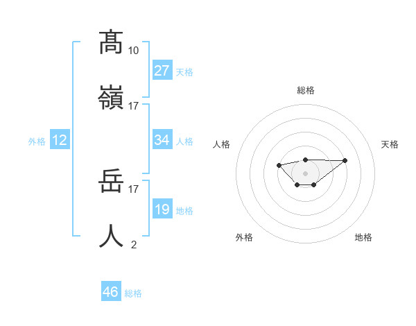 髙嶺 岳人さんの総格は46画の1点!