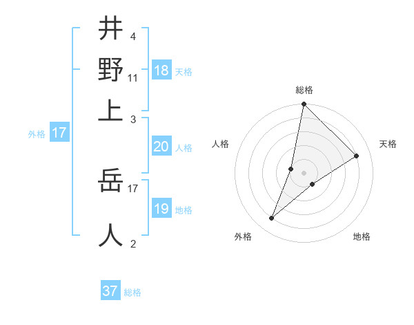 井野上 岳人さんを姓名の画数から五運を鑑定