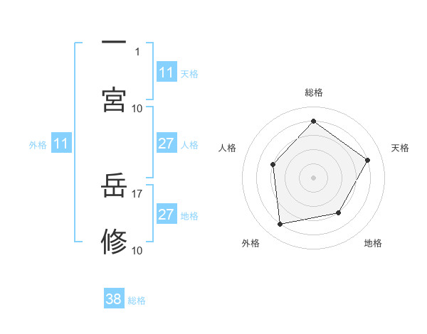 一宮 岳修さんの総格は38画の4点!