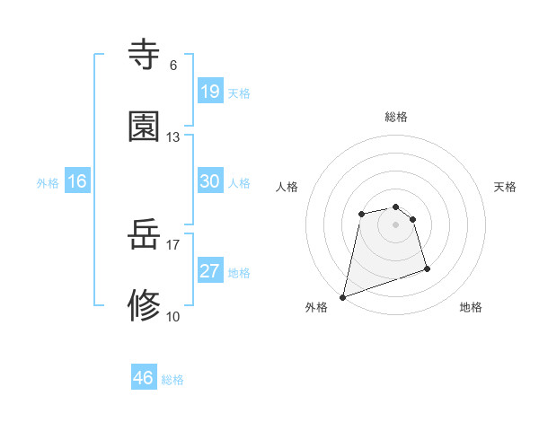 寺園 岳修さんを姓名の画数から五運を鑑定