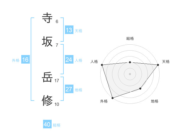 寺坂 岳修さんを姓名の画数から五運を鑑定
