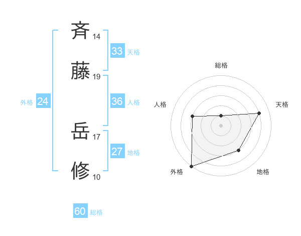 斉藤 岳修さんを姓名の画数から五運を鑑定