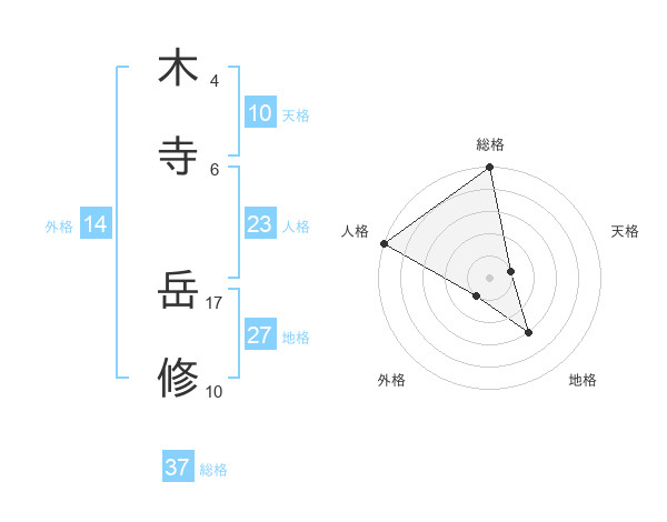 木寺 岳修さんの総格は37画の5点!