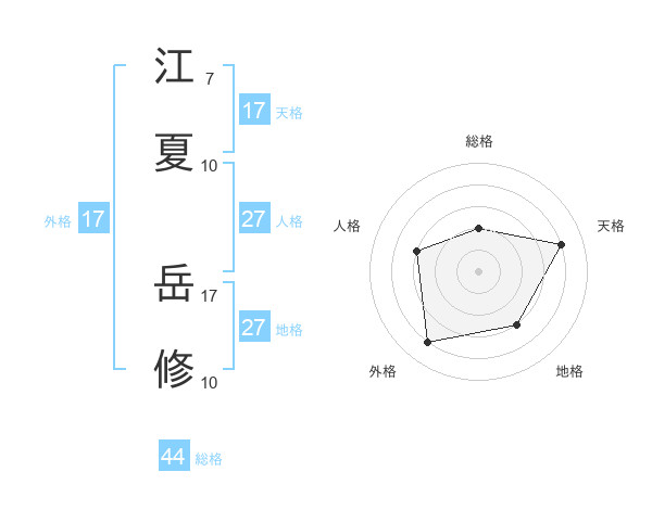 江夏 岳修さんを姓名の画数から五運を鑑定