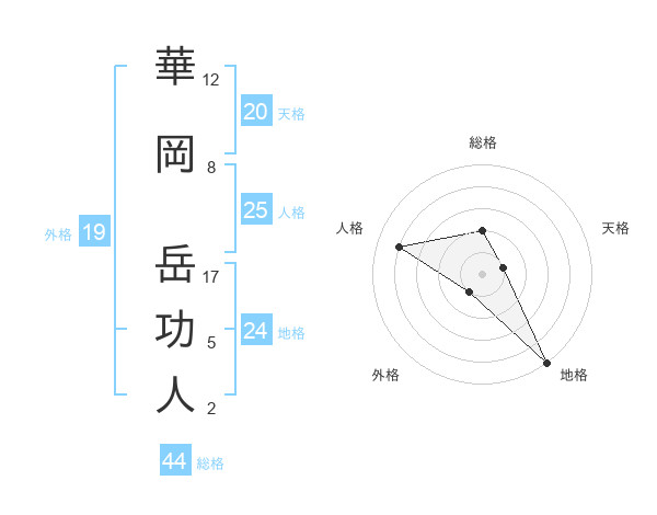華岡 岳功人さんの総格は44画の2点!