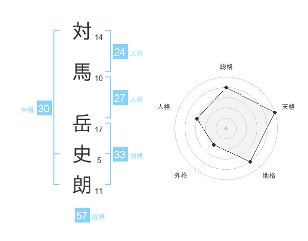 対馬 岳史朗さんの総格は57画の4点!