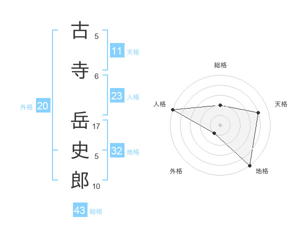 古寺 岳史郎さんの総格は43画の2点!