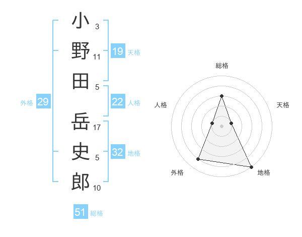 小野田 岳史郎さんを姓名の画数から五運を鑑定