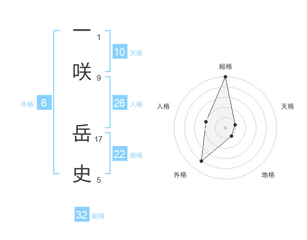 一咲 岳史さんを姓名の画数から五運を鑑定