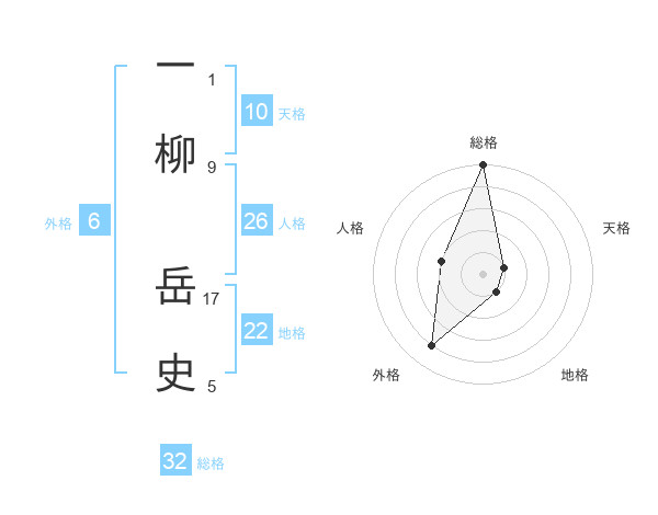 一柳 岳史さんの総格は32画の5点!