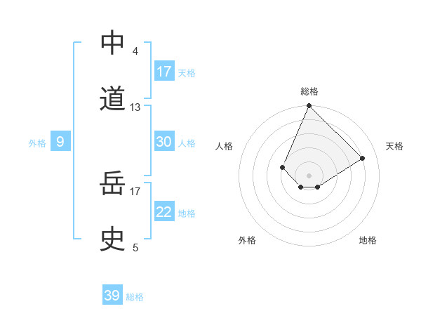 中道 岳史さんの総格は39画の5点!