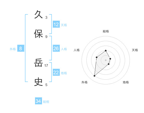 久保 岳史さんの総格は34画の2点!