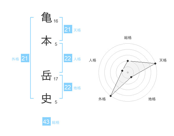 亀本 岳史さんを姓名の画数から五運を鑑定