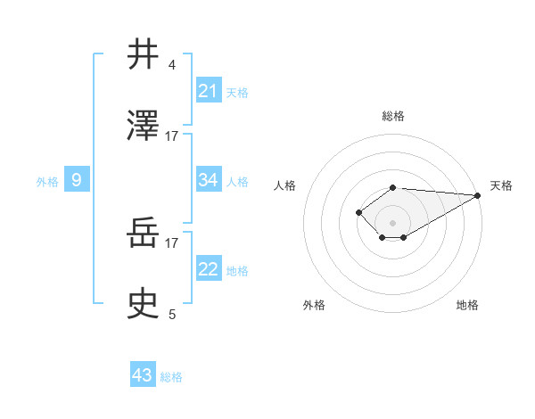 井澤 岳史さんを姓名の画数から五運を鑑定