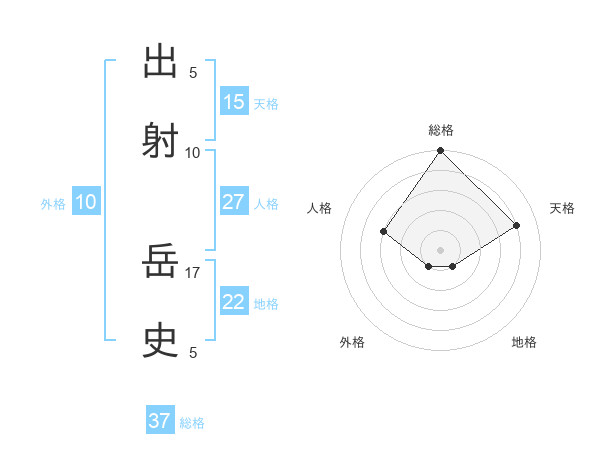 出射 岳史さんの総格は37画の5点!