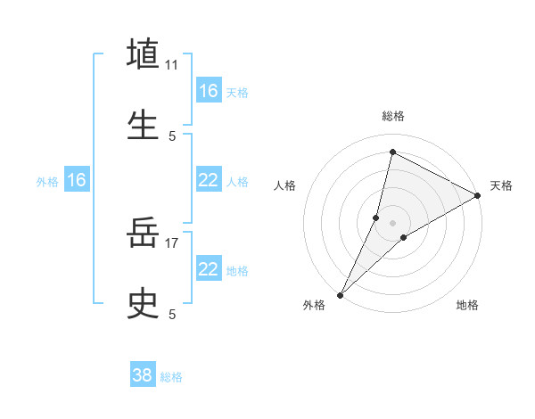 埴生 岳史さんを姓名の画数から五運を鑑定