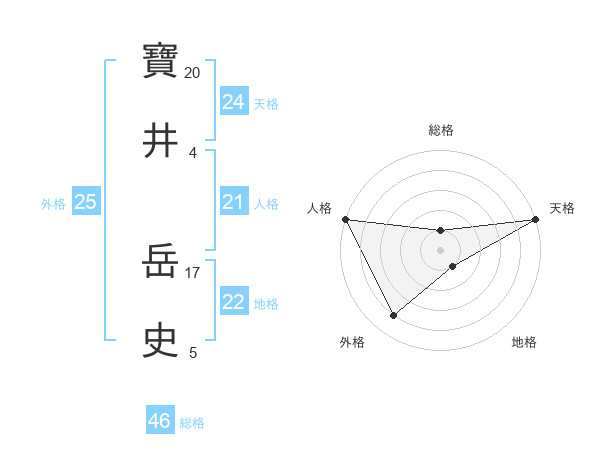 寶井 岳史さんの天格は24画の5点!