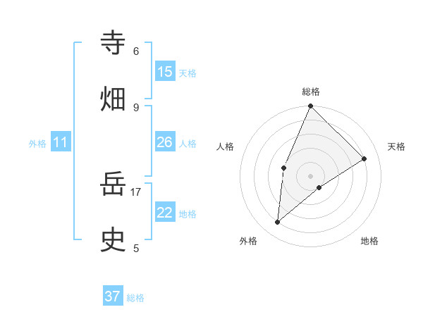 寺畑 岳史さんの総格は37画の5点!