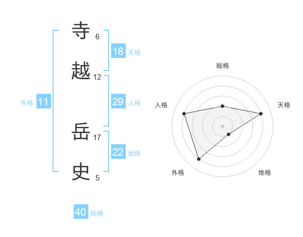 寺越 岳史さんを姓名の画数から五運を鑑定