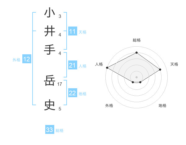 小井手 岳史さんの総格は33画の4点!