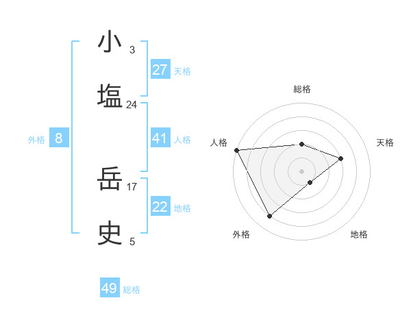 小塩 岳史さんを姓名の画数から五運を鑑定