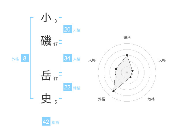 小磯 岳史さんの天格は20画の1点!