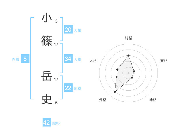 小篠 岳史さんの総格は42画の3点!