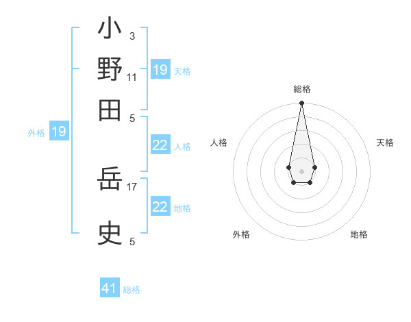小野田 岳史さんの総格は41画の5点!