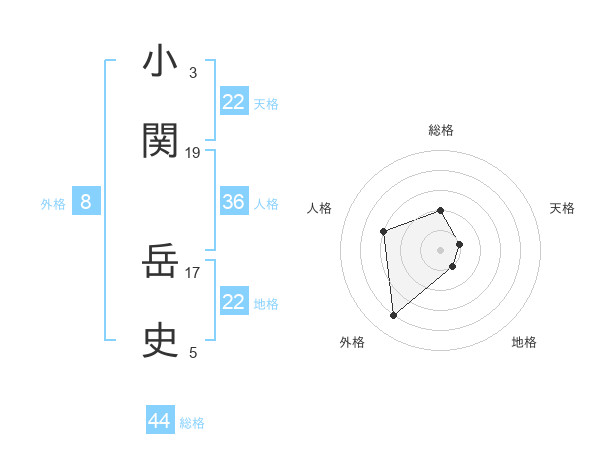 小関 岳史さんの地格は22画の1点!