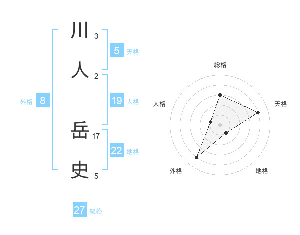 川人 岳史さんの天格は5画の4点!