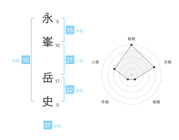 永峯 岳史さんを姓名の画数から五運を鑑定