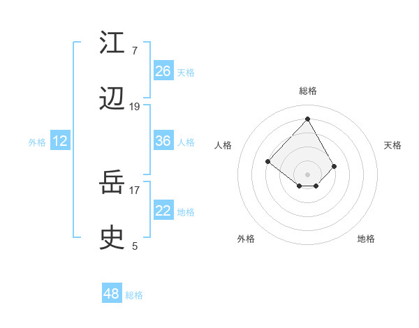 江辺 岳史さんの総格は48画の4点!