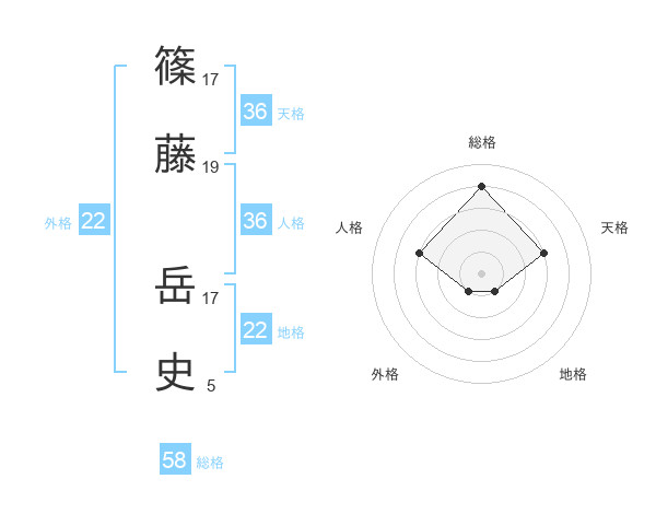 篠藤 岳史さんの総格は58画の4点!