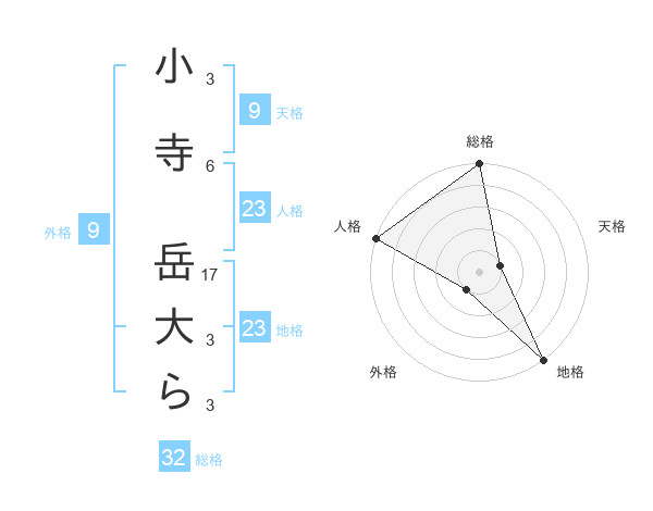 小寺 岳大らさんの総格は32画の5点!