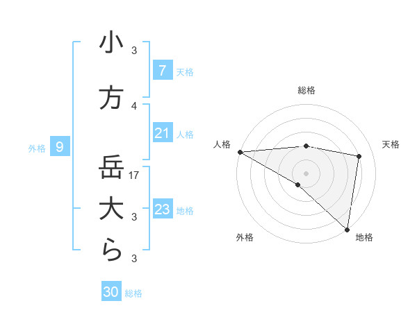 小方 岳大らさんの総格は30画の2点!