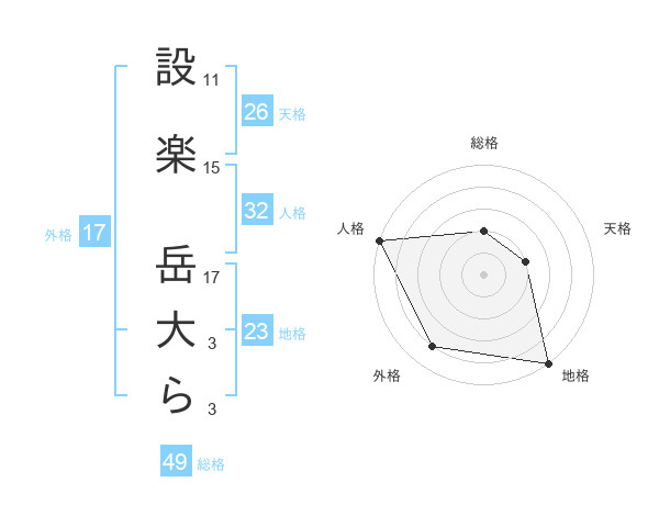設楽 岳大らさんを姓名の画数から五運を鑑定