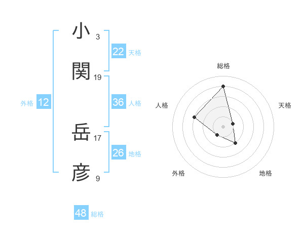 小関 岳彦さんを姓名の画数から五運を鑑定