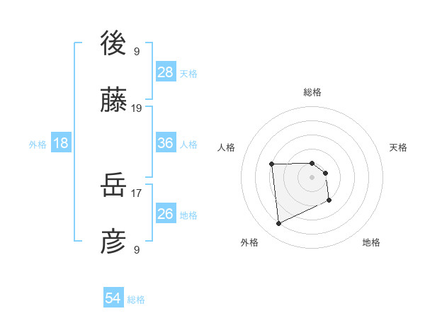 後藤 岳彦さんを姓名の画数から五運を鑑定
