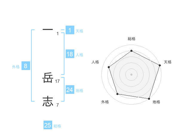 一 岳志さんの総格は25画の4点!