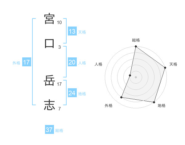 宮口 岳志さんを姓名の画数から五運を鑑定
