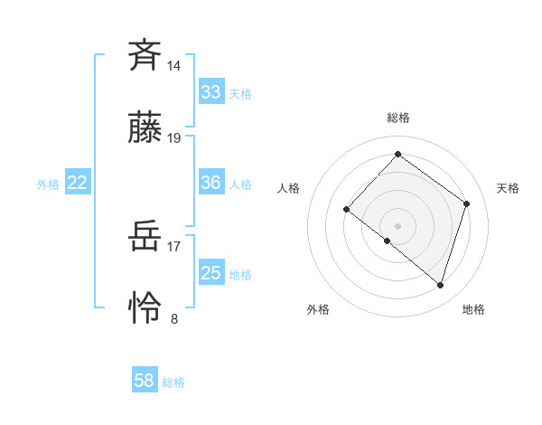 斉藤 岳怜さんの総格は58画の4点