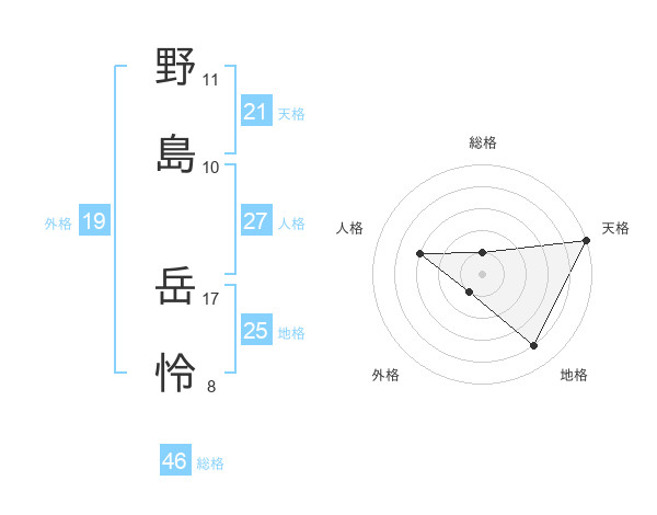 野島 岳怜さんを姓名の画数から五運を鑑定
