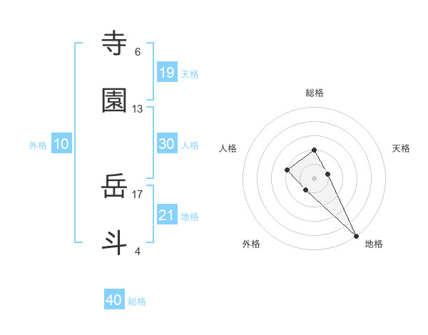 寺園 岳斗さんを姓名の画数から五運を鑑定