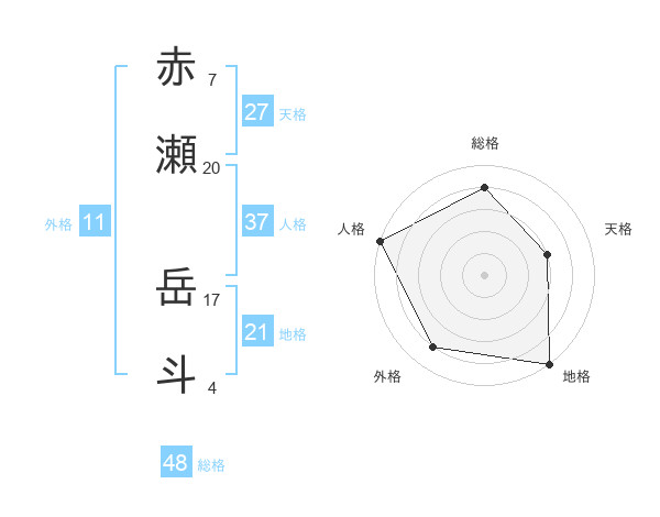 赤瀬 岳斗さんを姓名の画数から五運を鑑定