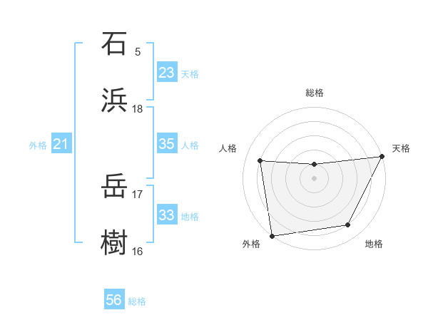 石浜 岳樹さんの天格は23画の5点!